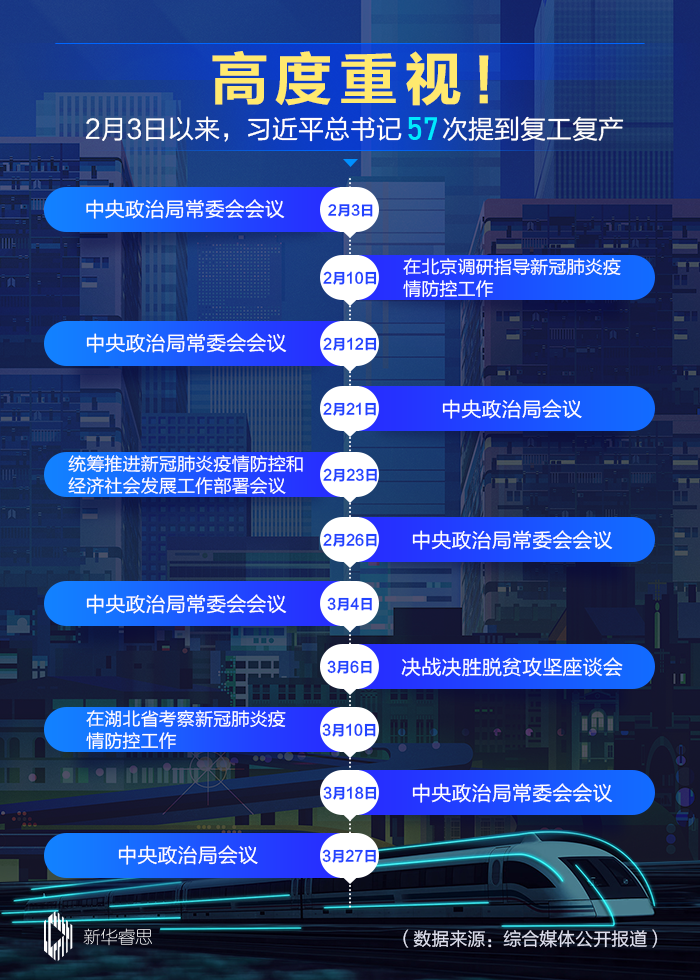 數(shù)據(jù)顯示,自2月3日以來(lái),習(xí)近平在不同場(chǎng)合共提到了復(fù)工復(fù)產(chǎn)57次,足見(jiàn)總書(shū)記對(duì)復(fù)工復(fù)產(chǎn)工作的重視和關(guān)注。