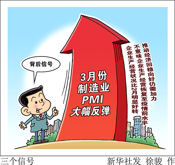 新華社北京3月31日電 題:3月份制造業(yè)PMI大幅反彈背后的三個信號