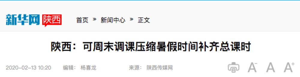 今年2月,四川就曾下發(fā)通知明確:中小學(xué)因延遲開學(xué)耽誤的教學(xué)時(shí)間,可通過調(diào)整周末和暑期等方式補(bǔ)齊。