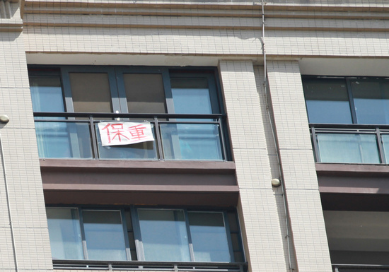 武漢市民陽臺打出標語:保重!