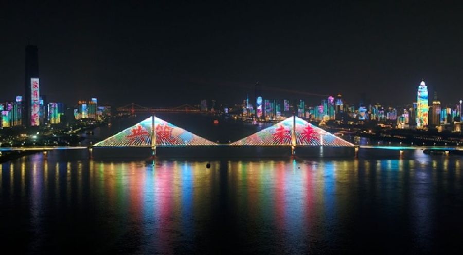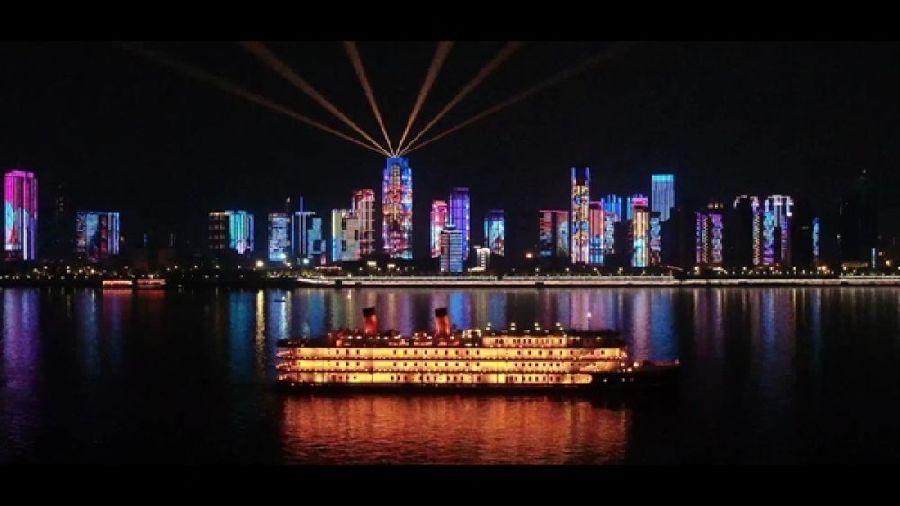 來自這座城市的滿滿謝意,將長(zhǎng)江裝點(diǎn)成閃耀的“銀河”,與星空交相輝映。
