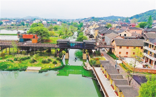 近年來,浙江省湖州市德清縣依托全域環境整治、五水共治、美麗鄉村建設等工作,打造具有濕地水鄉特色的生態旅游鄉村,使鄉村人居環境發生了巨大變化。圖為德清縣下渚湖街道二都小鎮,遠山青翠,流水潺潺,村屋整齊,宛若畫境。 王 正攝(中經視覺)