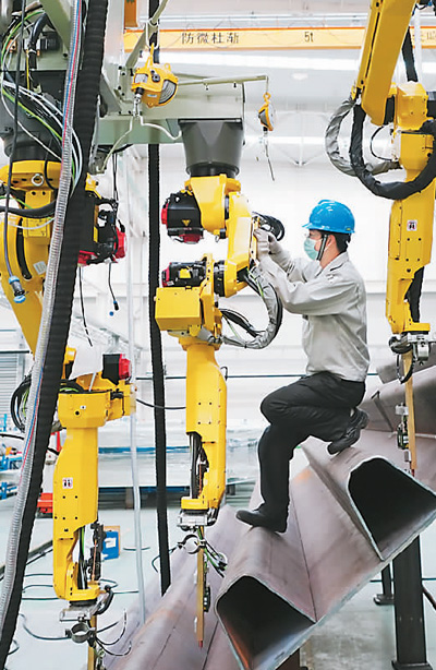 河北唐山國家高新技術產業開發區內工人在調試智能焊接機械手。新華社記者 楊世堯攝