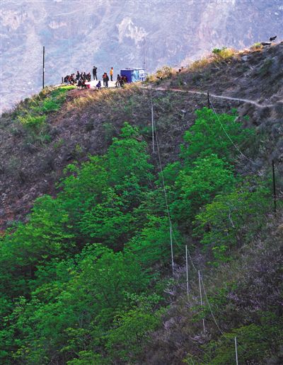 “懸崖村”村民早早集合,等待搬出大山,搬入新居。宋豪新 華小峰攝影報(bào)道