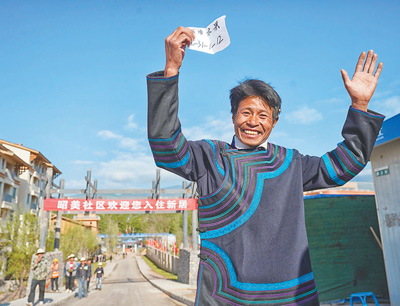 “懸崖村”村民的新家在四川省規(guī)模最大的易地扶貧搬遷安置點(diǎn),位于昭覺縣城附近的城北鄉(xiāng)谷都村、普提村等村,可供安置3900余戶1.8萬余人。從5月10日開始,來自昭覺全縣28個(gè)鄉(xiāng)鎮(zhèn)、92個(gè)邊遠(yuǎn)山村的群眾陸續(xù)搬遷到這里。(記者 宋豪新)