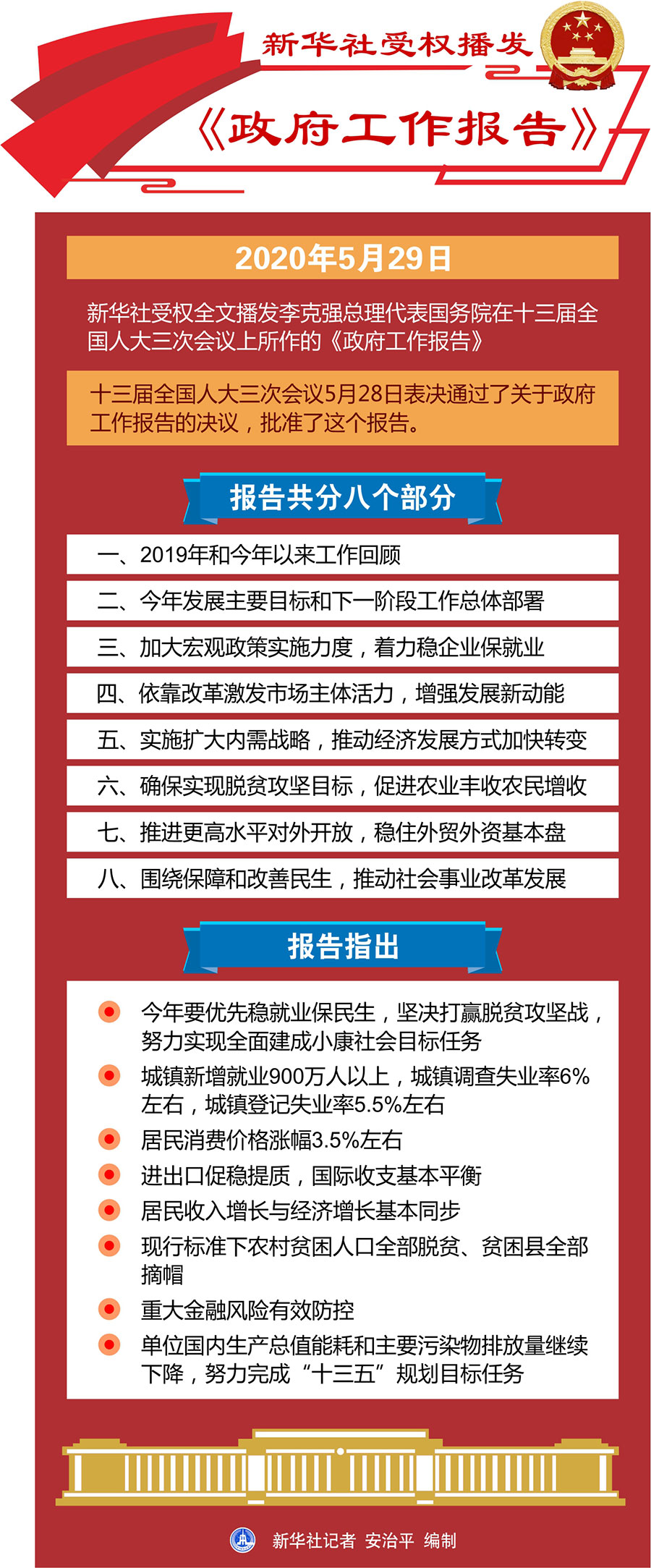 新華社北京5月29日電 新華社受權(quán)于29日全文播發(fā)李克強總理代表國務(wù)院在十三屆全國人大三次會議上所作的《政府工作報告》。十三屆全國人大三次會議5月28日表決通過了關(guān)于政府工作報告的決議,批準了這個報告。