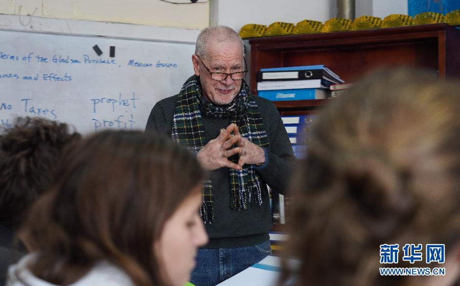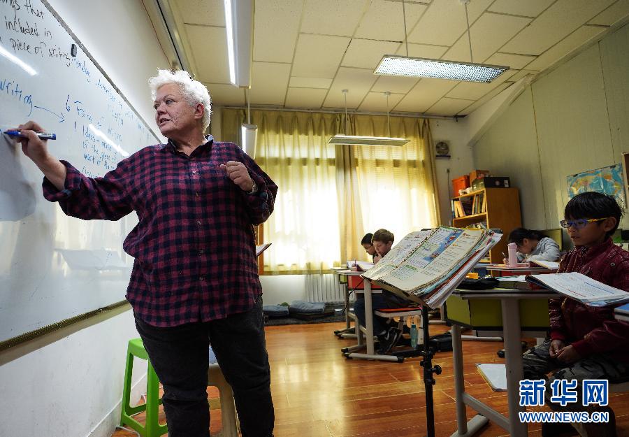 一名外籍老師在西寧市外籍人員子女學校內(nèi)為孩子們上課(2019年11月4日攝)。新華社記者吳剛攝