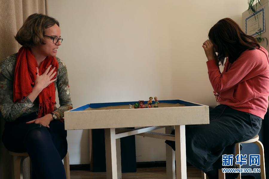 安可悅(左)在位于西寧的心理咨詢工作室輔導一名來訪者(2019年10月22日攝)。新華社記者趙玉和攝