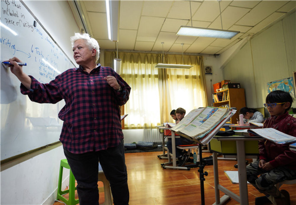 一名外籍老師在西寧市外籍人員子女學校內為孩子們上課(2019年11月4日攝)。新華社記者 吳剛 攝