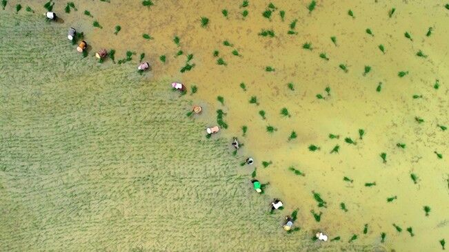 站在堤壩上,記者看到,身穿迷彩服的巡查隊(duì)員一字排開,緩慢向前推進(jìn),隊(duì)員們每人手持一根長(zhǎng)長(zhǎng)的竹竿撥開雜草,仔細(xì)觀察地面是否有泡泉或管涌出現(xiàn)。