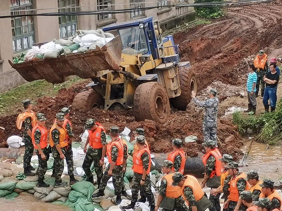 當地搶險人員、武警安徽總隊池州支隊140名武警官兵第一時間趕赴現場,東至縣人武部同時組織90名地方民兵緊急支援,陳壽春位列“前鋒”。