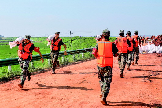 截至14日,江西累計投入各種抗洪搶險力量128萬多人次,累計投入機械裝備8800多臺(套),填堵土石方122萬多立方米。