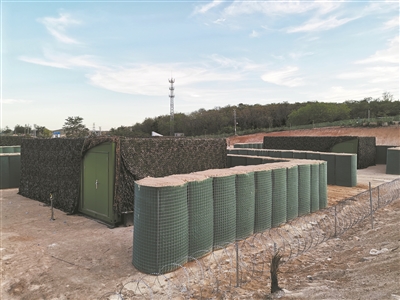 快裝式野營支援保障系統具有質量輕便、結構簡單、開設迅速等特點,主要用于缺乏既有營房依托的大規模、基地化野營支援保障行動;發揮集裝箱、鋼結構等裝配式建筑成熟工業化體系產品優勢,以及充氣帳篷快速搭建的特點,集成指揮、住宿、會議、倉儲、就餐、衛浴、空調等功能模塊,根據部隊不同兵力規模和保障需求靈活插接選用;可短時間內快速完成野戰營地開設,一套系統能夠為一個營規模部隊提供一體化野戰宿營支援保障。