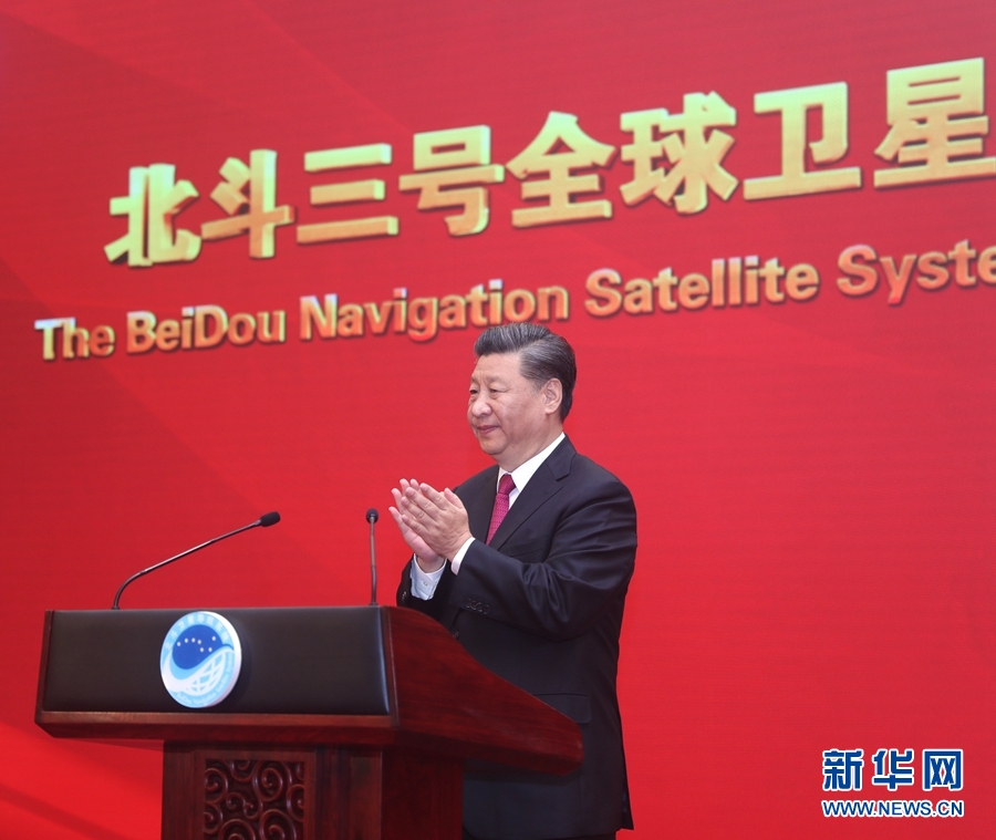 10時(shí)48分,習(xí)近平走上主席臺,宣布:“北斗三號全球衛(wèi)星導(dǎo)航系統(tǒng)正式開通!”全場響起經(jīng)久不息的熱烈掌聲。