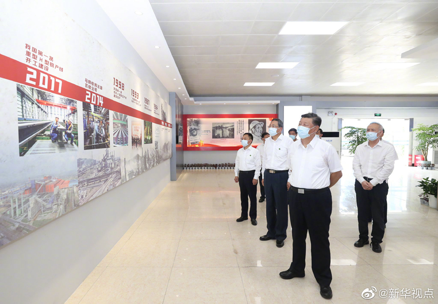 19日上午,正在安徽考察調(diào)研的習(xí)近平總書記走進(jìn)中國寶武馬鋼集團(tuán)優(yōu)質(zhì)合金棒材車間,冒著高溫察看生產(chǎn)運(yùn)行情況,并同勞動模范、工人代表親切交流。習(xí)近平指出,在抗擊新冠肺炎疫情過程中,馬鋼較早復(fù)工復(fù)產(chǎn),實(shí)現(xiàn)了產(chǎn)量、營銷收入同比雙升,展現(xiàn)了國有經(jīng)濟(jì)的強(qiáng)大韌性。他勉勵馬鋼在長三角一體化發(fā)展中把握機(jī)遇、順勢而上,特別是要把自身改革發(fā)展同長三角一體化發(fā)展有機(jī)結(jié)合銜接,力爭在長三角一體化發(fā)展中不斷發(fā)展壯大自己,也為長三角一體化發(fā)展作出自己的貢獻(xiàn)。(文字記者:張曉松 攝影記者:鞠鵬 王曄 燕雁)