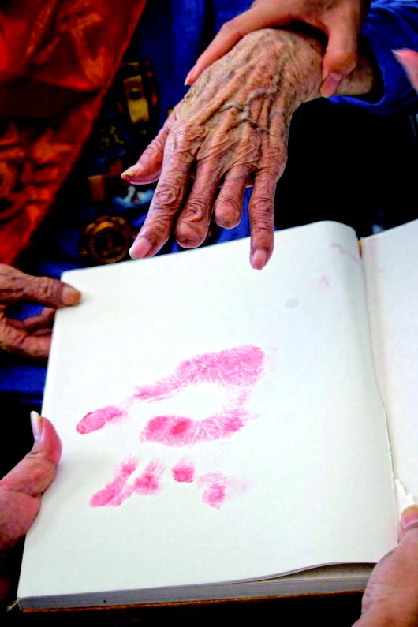 “我們一直在想辦法為抗戰(zhàn)老兵留下一些印記。最開始想出影集,可是考慮到經(jīng)費的原因,我們決定留手印?!薄昂侠媳摇必撠熑死萧~說,留手印是既有紀念意義、又“花錢少”的方式,“我們的經(jīng)費很寶貴,每一分錢都要直接用在老兵身上?!?/p>