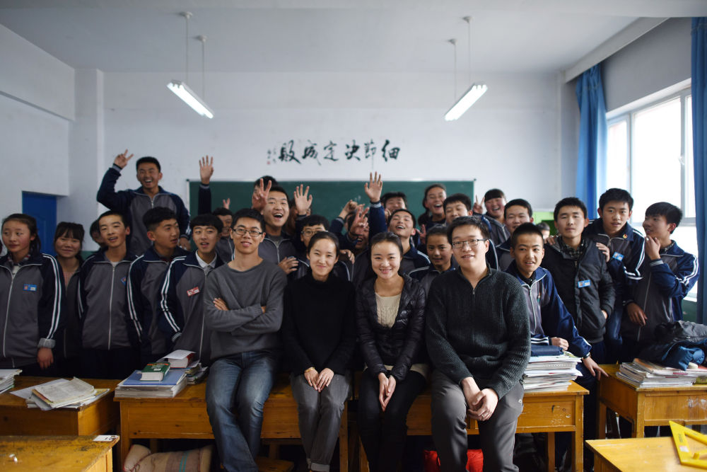 ↑支教團(tuán)成員和湟中一中學(xué)生合影