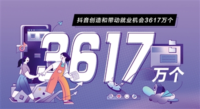 像張俊杰、潘仕學(xué)一樣在抖音上實(shí)現(xiàn)“靈活”就業(yè)的人還有很多。隨著越來越多的人全職或兼職以拍視頻為職業(yè),抖音目前已形成連接億萬用戶和創(chuàng)作者、商家的互利共生就業(yè)生態(tài)。據(jù)《報(bào)告》測(cè)算,過去一年,抖音整體帶動(dòng)的直接和間接就業(yè)機(jī)會(huì)達(dá)3617萬個(gè)。