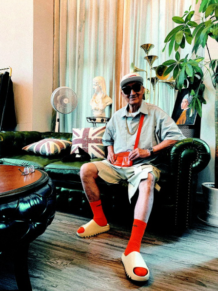 “康康爺爺”在家展示時尚穿搭。 受訪者供圖