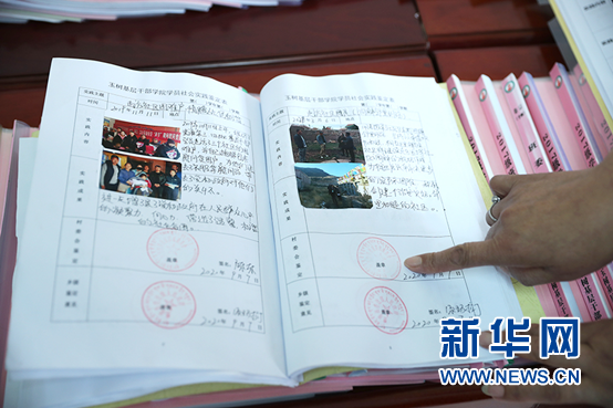 玉樹州基層干部學院李玉蘭院長介紹學員考核手冊。新華網(wǎng)記者焦鵬攝