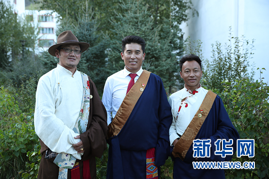 玉樹州基層干部學院一期學員江加多杰(左一)和同學在一起。新華網(wǎng)記者焦鵬攝