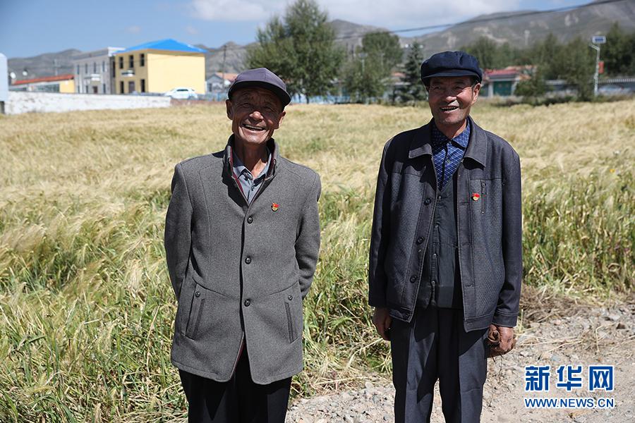 東達村黨員徐國才(左一)、楊發(fā)財接受記者采訪,他們也是東達村的致富能人。新華網(wǎng)記者焦鵬攝
