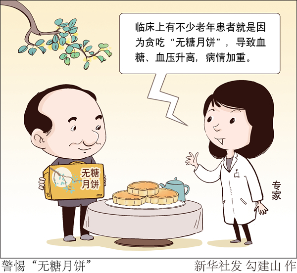 另外,市場上所謂的“無糖月餅”,是指餡料中不含蔗糖的月餅,但月餅本身含有大量的淀粉,可分解成葡萄糖。臨床上有不少老年患者就是因為貪吃“無糖月餅”,導致血糖、血壓升高,病情加重。