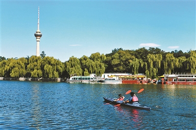 秋高氣爽、天藍水清,玉淵潭公園南側的八一湖碧波蕩漾,五彩的皮劃艇在水中游弋……從9月份開始,八一湖內2萬平方米的水域正式成為北京市天然河湖水域,并向市民開放水上運動試點,市民可體驗和學習皮劃艇運動。實際上,“十三五”以來,越來越多的北京城市河湖已經從之前的“閑人勿進”變成了市民的親水樂園。