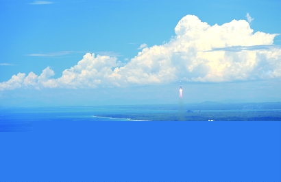 1分鐘后,長五遙四消失在發(fā)射基地人們的肉眼視線里,只留下雷鳴般的轟響依然回蕩在海天之上。