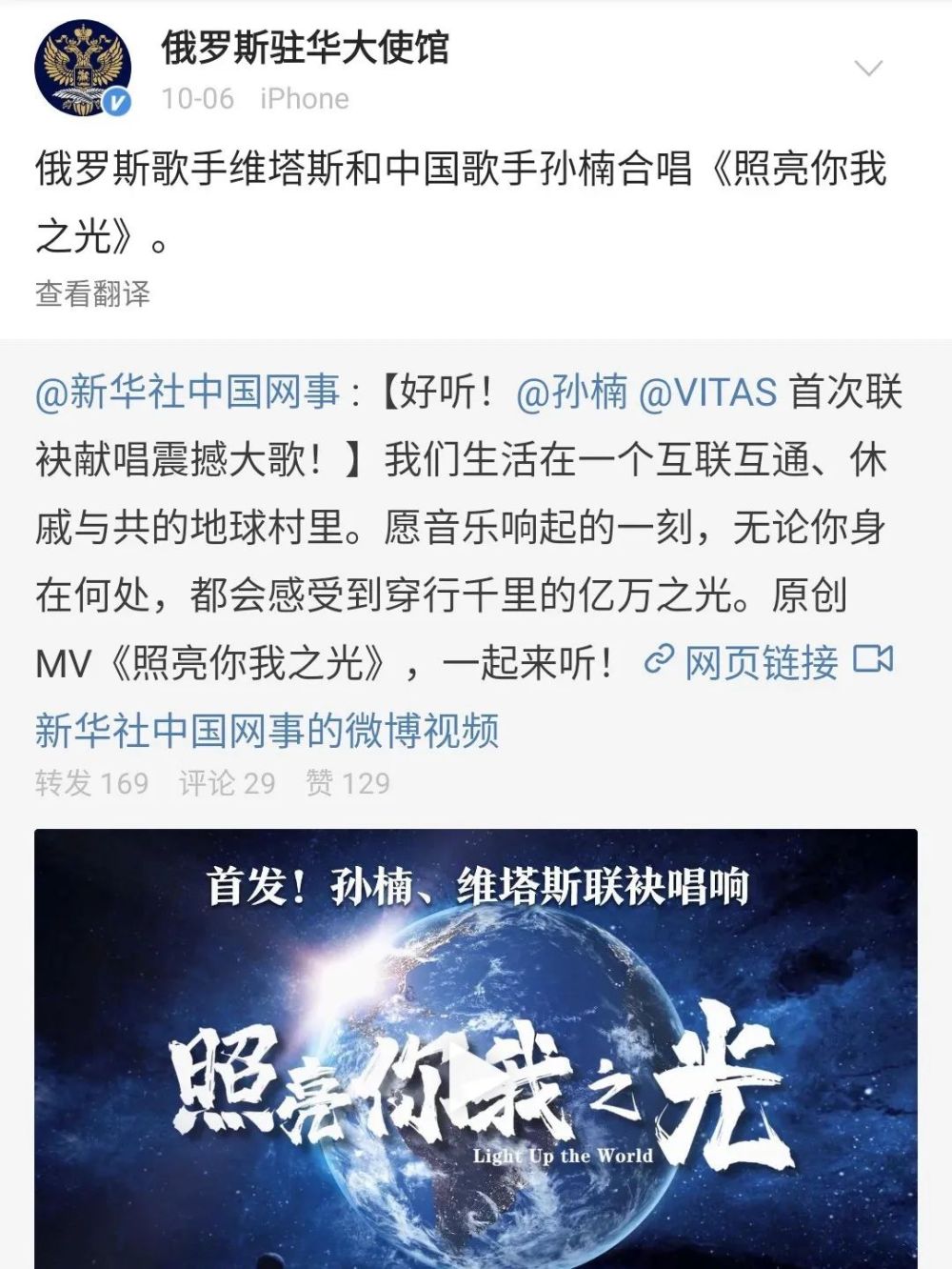 西陵歌者:世界有黑夜,難阻我們追求光明;世界有紛亂,無礙我們喜愛和平;唯有身受現實之惑,方能堅守凈土之約。與光同行的,還有人間的煙火和溫度。文明的力量在于創造與復興;至美的旋律誕生于自然和傳統,中俄兩國都有深厚的文化傳承和底蘊,都有守護文明照亮世界的決心。
