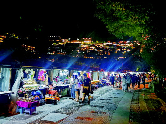 ▲西江千戶苗寨銀飾街夜景。 記者羅羽攝