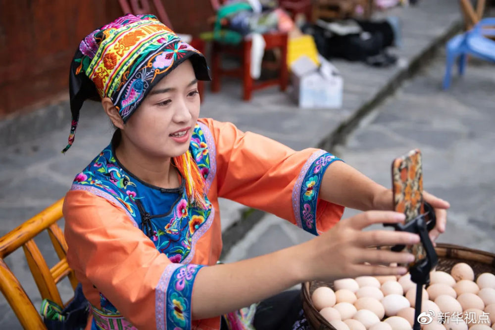 4月23日,在十八洞村拍攝的返鄉創業做直播帶貨成“網紅”的大學生施林嬌 新華社記者薛宇舸 攝