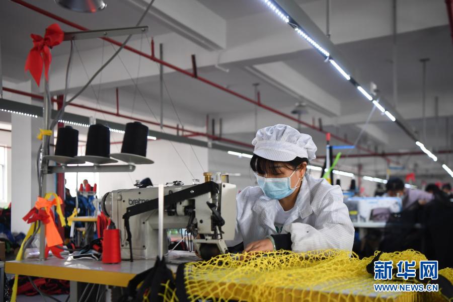 工人在湖南星海運(yùn)動用品有限公司加工運(yùn)動用網(wǎng)(10月28日攝)。新華社記者 薛宇舸 攝