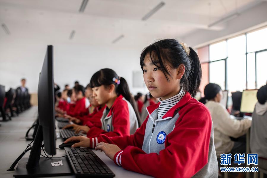 9月24日,學生在位于鎮雄縣大地易地扶貧搬遷安置點的高山九年一貫制學校上計算機課。新華社記者 胡超 攝