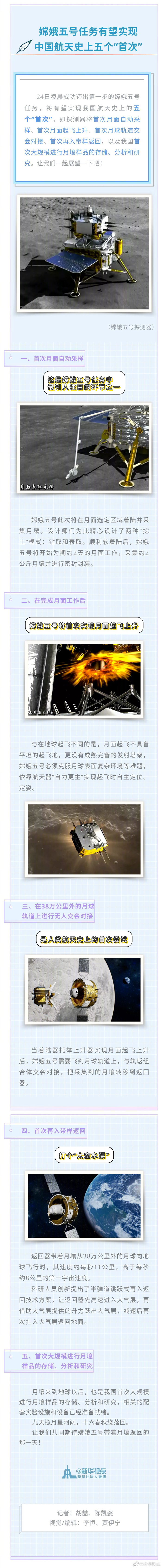 作為我國探月工程“繞、落、回”三步走中的收官之戰,不同于中國探月工程嫦娥家族的其他探測器一去不復返,嫦娥五號將有望實現中國航天史上的多個“首次”。每個“首次”都意味著全新的挑戰,每一步都堪稱“步步驚心”。