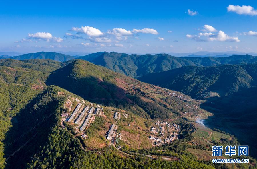 群山中的云南省楚雄市子午鎮(zhèn)挖銅村埂么村民小組(11月30日攝,無人機照片)。新華社記者 江文耀 攝