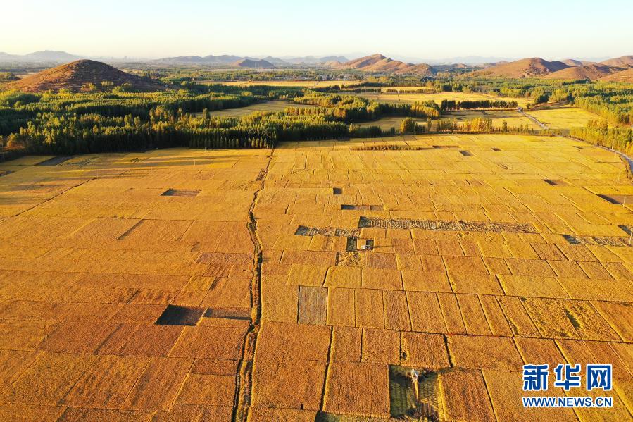 10月18日在河北省灤州市古城街道蔣莊村拍攝的稻田(無人機照片)。