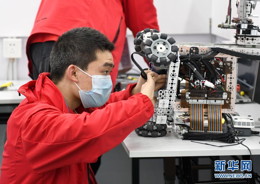 12月10日,選手在移動機器人項目比賽中調(diào)試機器人。新華社記者 盧漢欣 攝