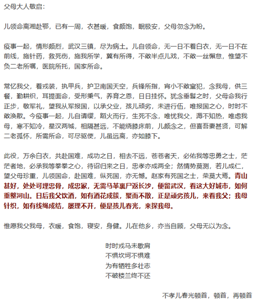 ??一封寫(xiě)于2月13日的家書(shū)公之于眾