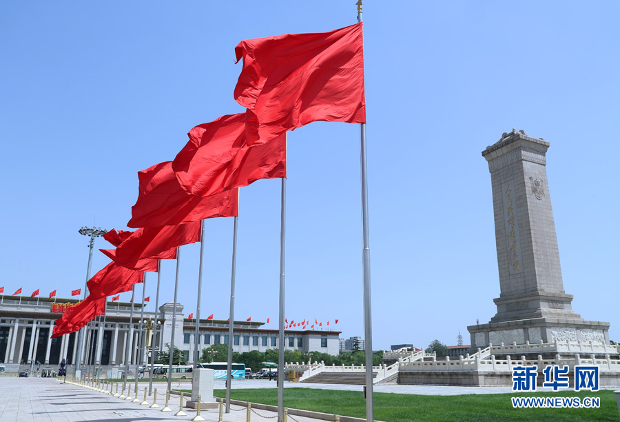 5月28日,第十三屆全國人民代表大會第三次會議在北京人民大會堂舉行閉幕會。這是天安門廣場上紅旗飄揚。 新華網 翟子赫 攝