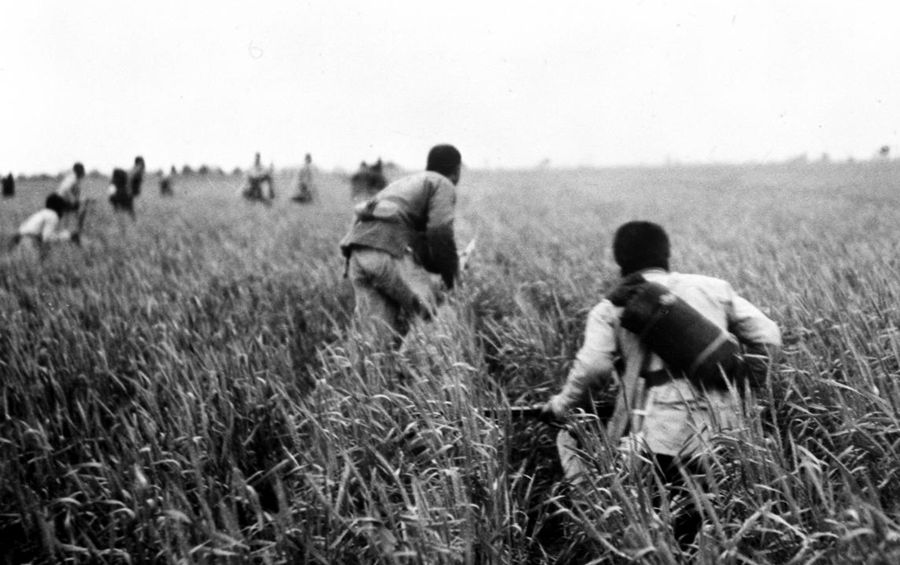 八路軍戰(zhàn)士在冀中的麥田里進(jìn)行伏擊戰(zhàn) 新華社圖片
