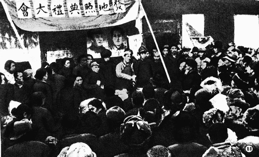 冀中農民舉行擁護土地改革運動大會。 新華社圖片