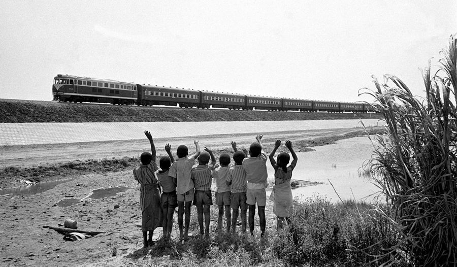 圖為贊比亞魯西瓦西湖畔的少年兒童歡迎坦贊鐵路的列車通到他們的家鄉(xiāng)。新華社圖片