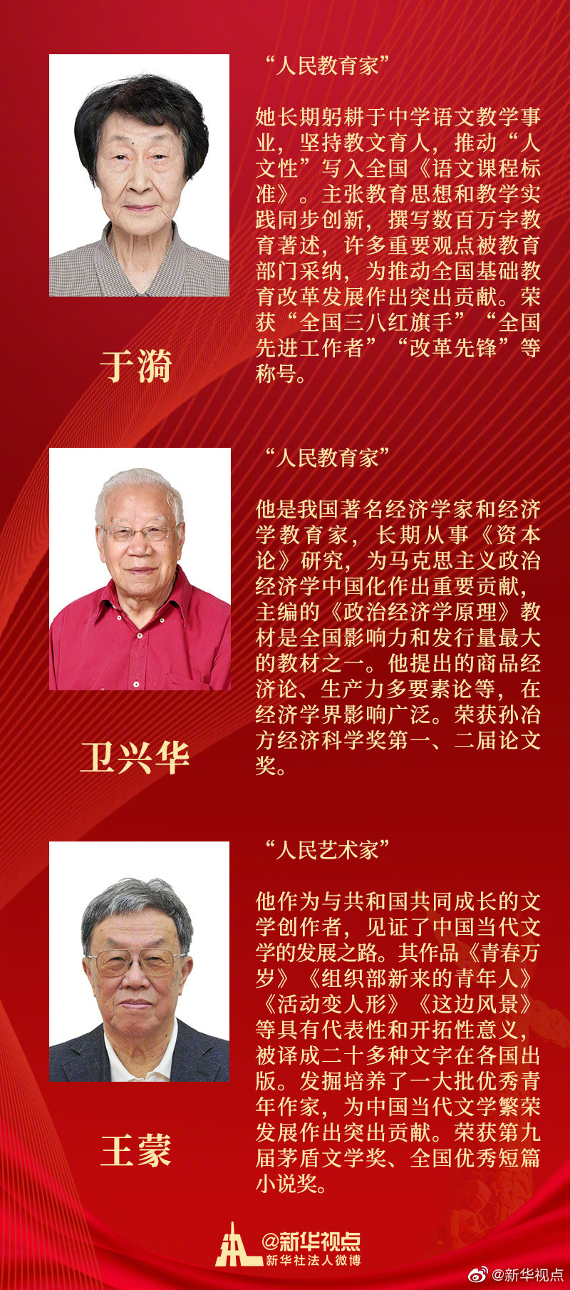 南仁東、董建華、于漪、王蒙、王有德等28人獲授國家榮譽稱號。他們與時代同行、砥礪奮進,為共和國的事業鞠躬盡瘁,不朽的“鋼鐵精神”將永遠激勵著我們。為這些閃亮的名字點贊!轉發傳遞,致敬功勛!