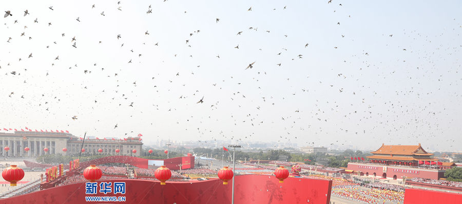 10月1日上午,慶祝中華人民共和國(guó)成立70周年大會(huì)在北京天安門(mén)廣場(chǎng)隆重舉行。這是天安門(mén)廣場(chǎng)上放飛和平鴿。 新華社記者 金立旺 攝