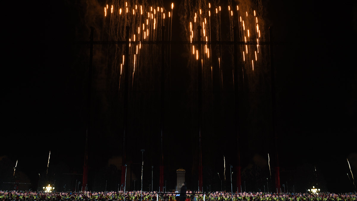 盛裝的天安門廣場,五星紅旗迎風招展。從盛大的國慶閱兵到歡樂的群眾游行,轟鳴的禮炮、嘹亮的口號、鏗鏘的步履、喧天的鑼鼓、紛飛的氣球、自信的歡歌……生動的畫面傳向五洲,歡樂的笑臉感染世界。