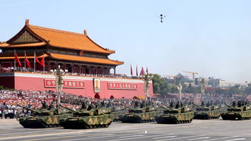 從1949年到1959年,每年10月1日都舉行國慶閱兵。此后,連續24年沒有舉行國慶閱兵。1984年,新中國成立35周年時,恢復了國慶閱兵。1999年、2009年,分別舉行了國慶50周年、60周年閱兵。14次閱兵,濃縮了人民軍隊現代化發展步伐。開國大典閱兵式,閱兵部隊裝備是“萬國造”;1959年,受閱武器裝備基本實現國產化;1984年,受閱28種武器裝備全部是我國自行研制的,核武器首次亮相;1999年,新裝備占90%以上;2009年,受閱裝備大多已達到或接近世界先進水平。