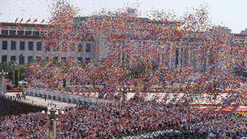 勝利日,中國的驕傲之日;天安門,中國的標志之地。此時此地,軍號激越,戰旗獵獵,和平正義之師展示威武雄壯,愛好和平的人們歡呼喝彩。這是不屈和勝利的歡慶,是光明和進步的強音,更是和平與正義的亮劍。