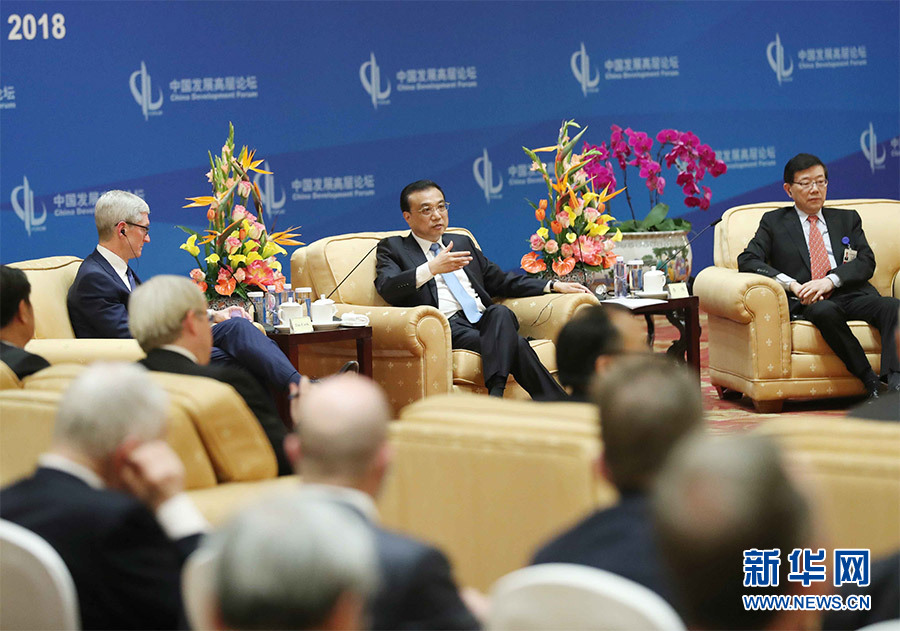 3月26日,國務院總理李克強在北京會見出席中國發(fā)展高層論壇2018年年會的外方代表并同他們座談。 新華社記者 劉衛(wèi)兵 攝
