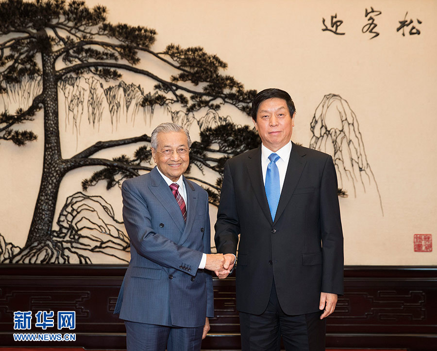 8月20日,全國人大常委會(huì)委員長栗戰(zhàn)書在北京人民大會(huì)堂會(huì)見馬來西亞總理馬哈蒂爾。 新華社記者 黃敬文 攝